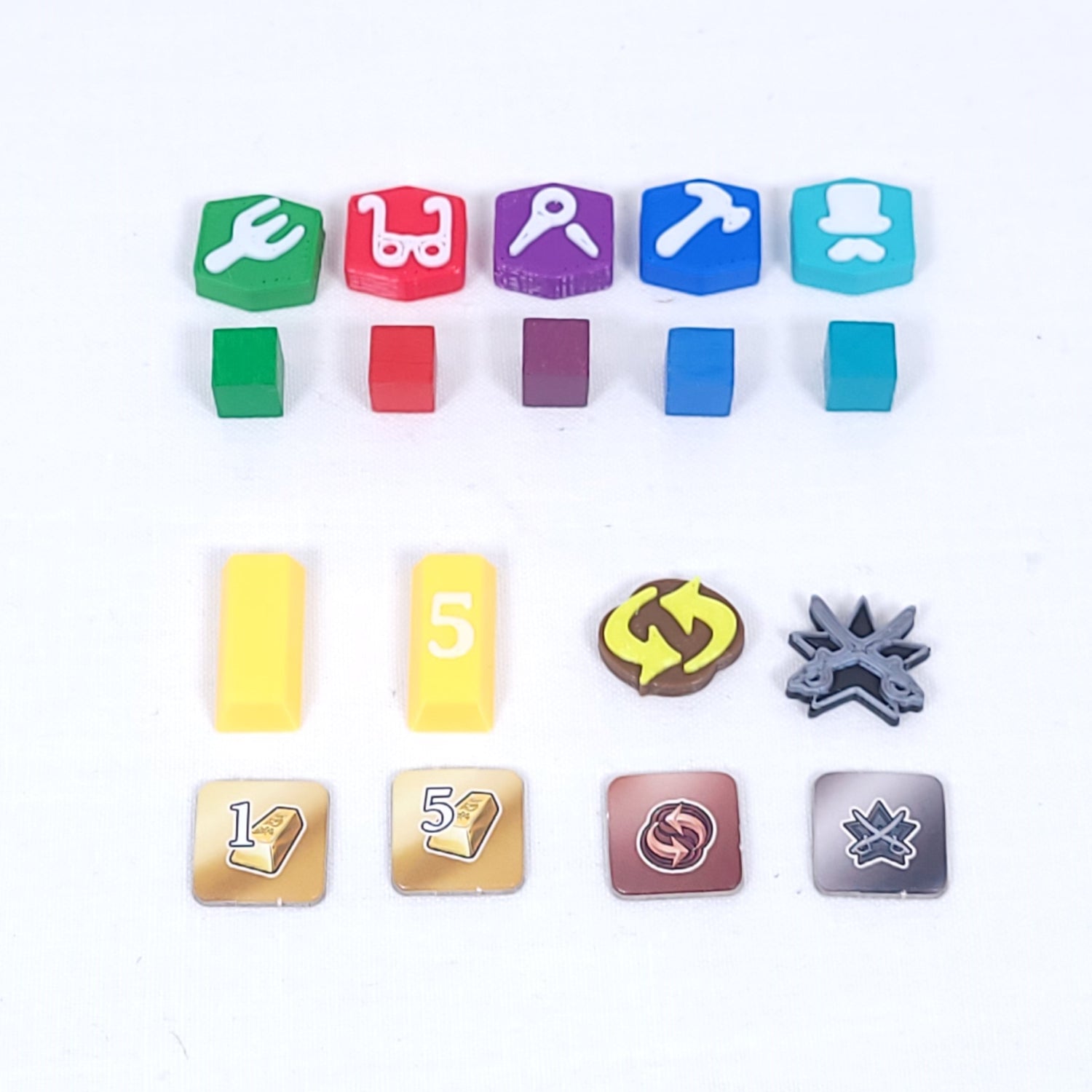 Zum einen verschleißen Tokens, Marker und Plättchen aus Pappe deutlich schneller und zum anderen sehen sie nicht so hochwertig aus.