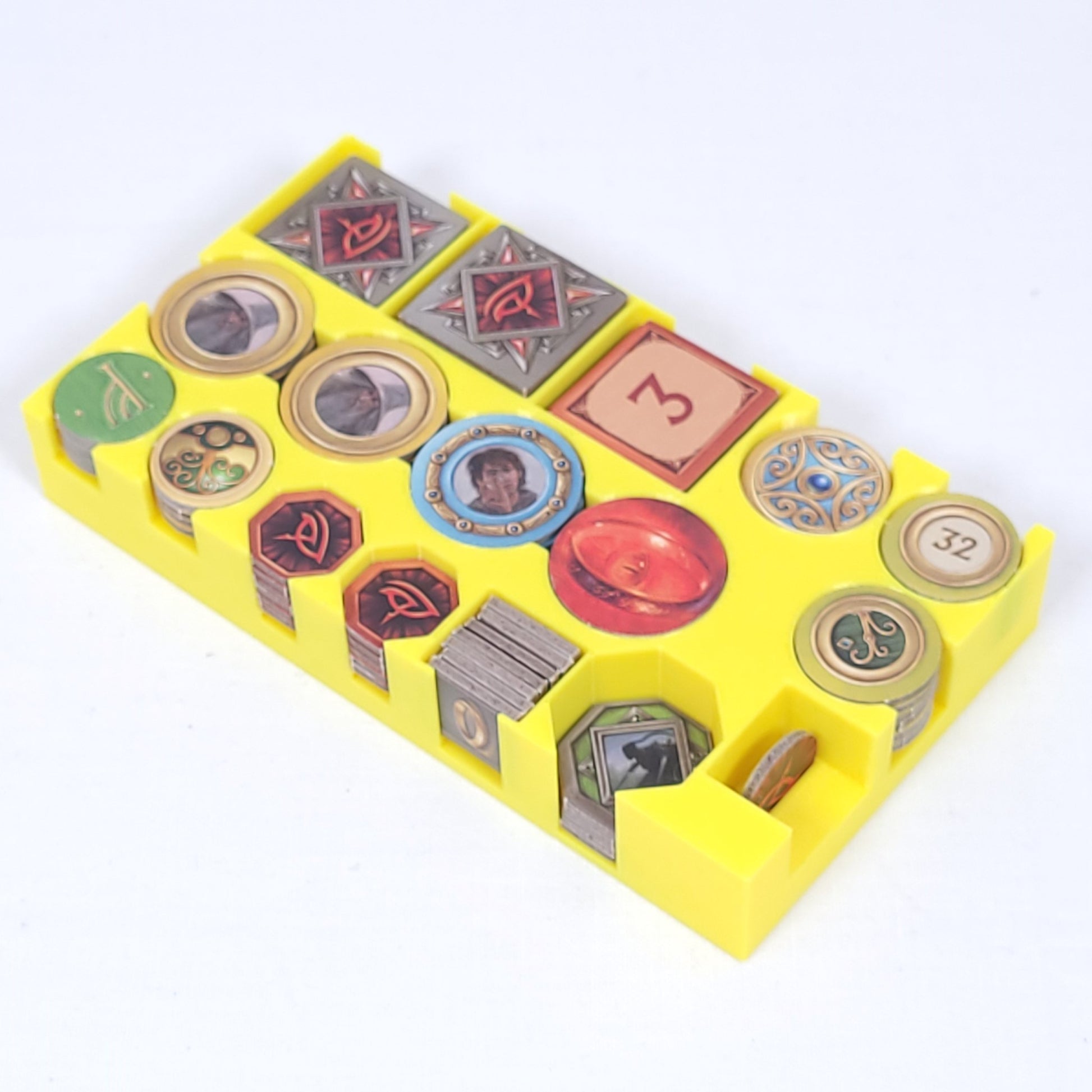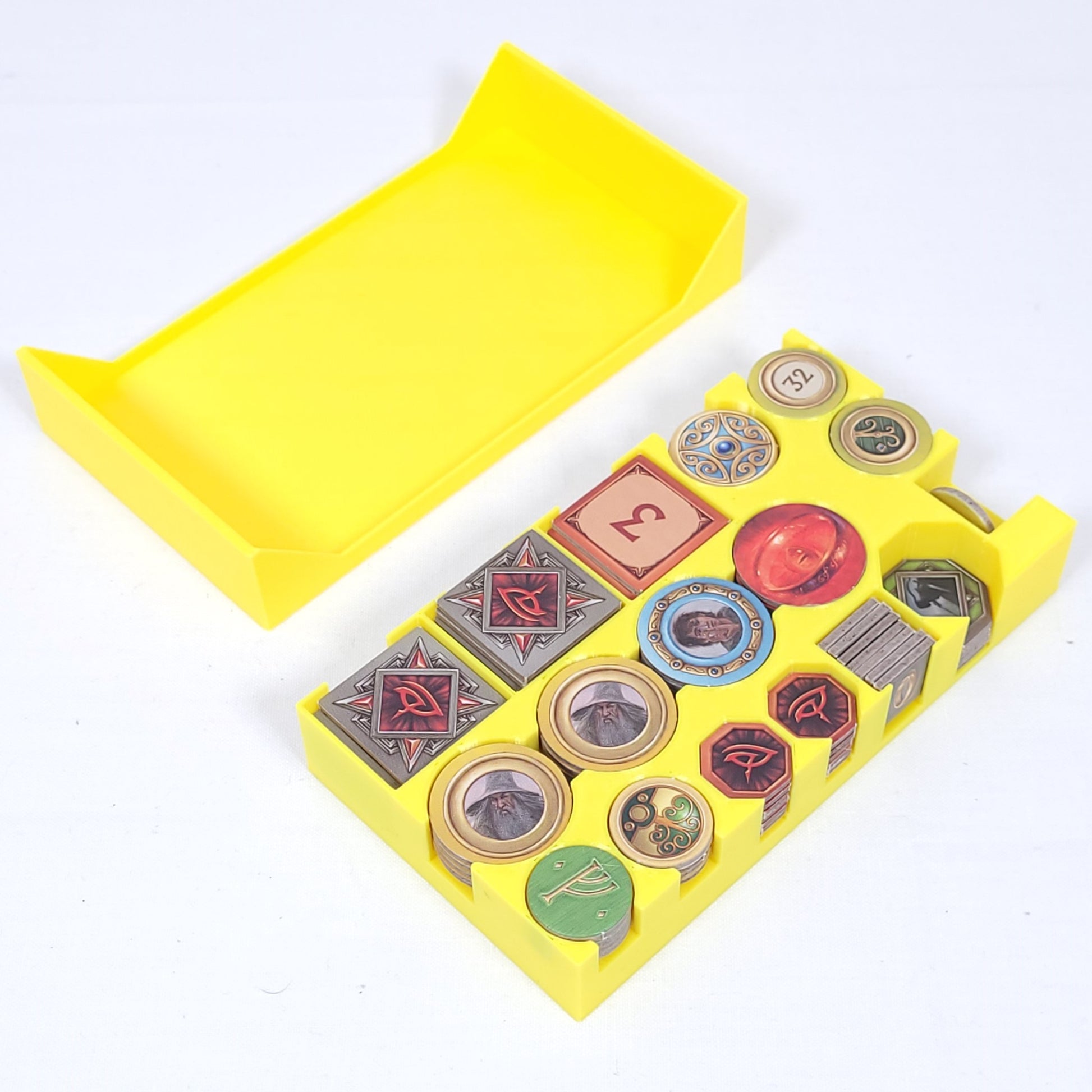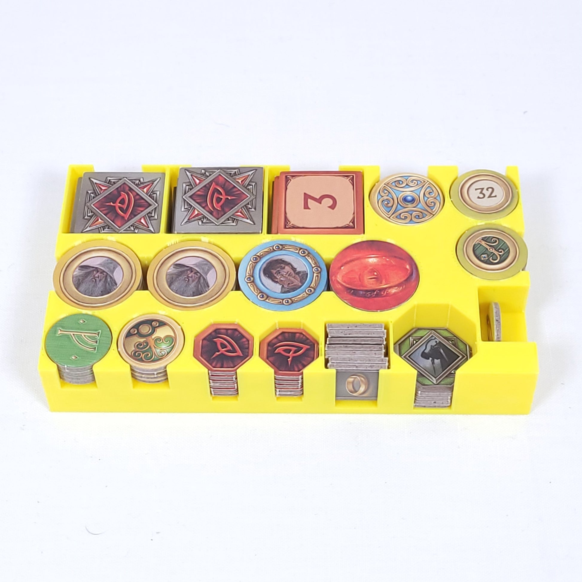 Eine praktische Aufbewahrungsbox für die Token von dem Brettspiel Jagd nach dem Ring aus dem Herr der Ringe Universum. Es bietet Platz für alle Token aus dem Spiel.