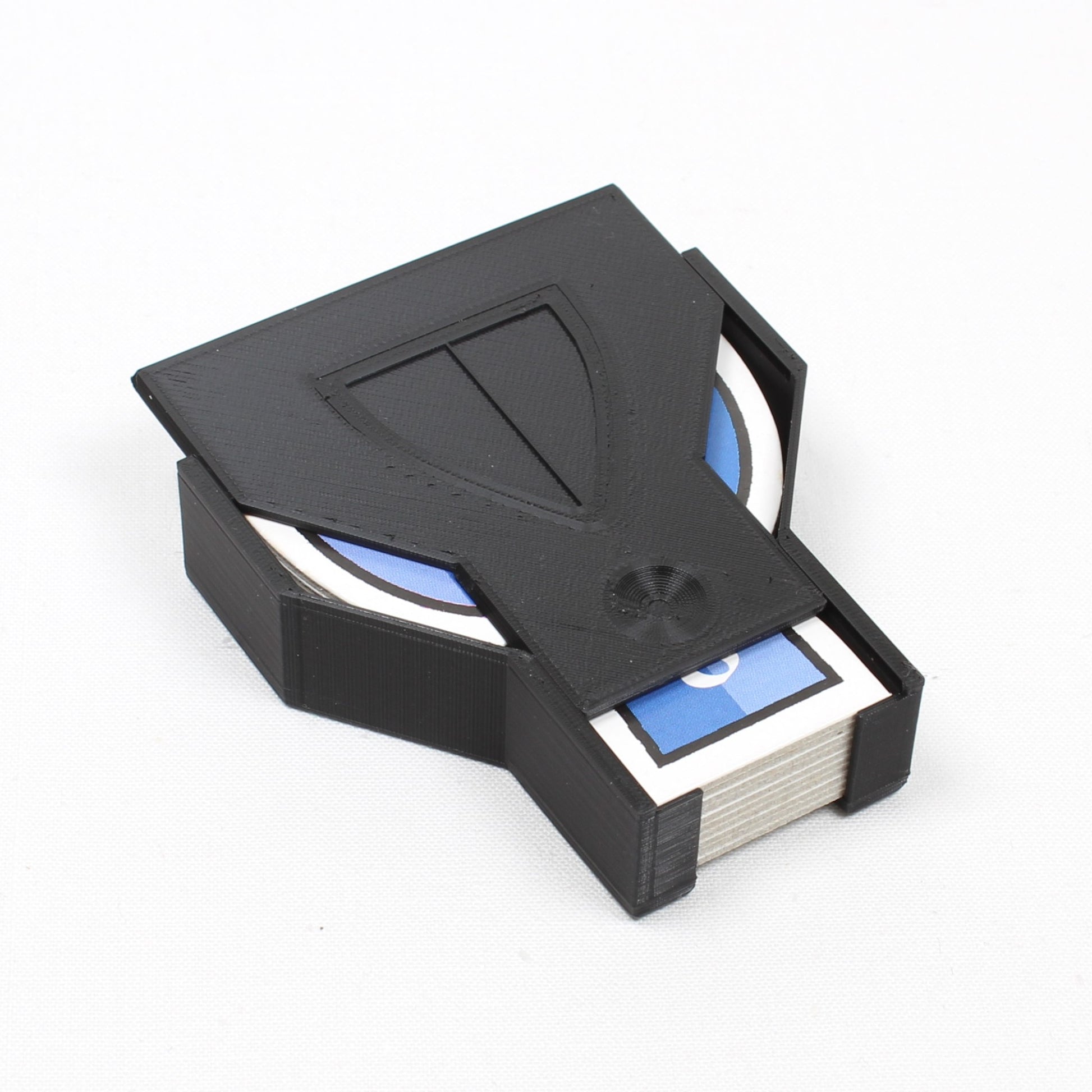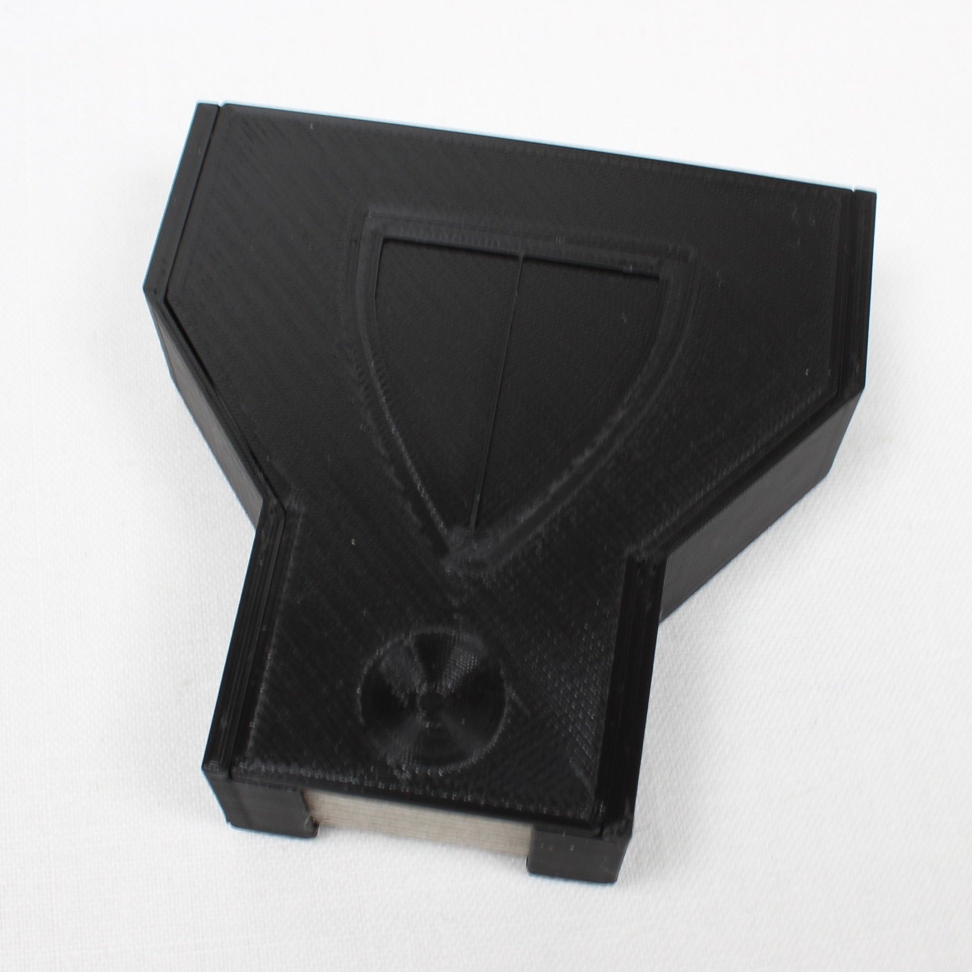 In diese Aufbewahrungsbox für das Herr der Ringe Brettspiel passen alle Schildplättchen (1er, 2er, 3er) hinein. Mit dem dazugehörigen Deckel kann die Box zugeschoben werden und die Aussparungen am Boden erlauben ein gutes Entnehmen der Schilder. Die Anordnung der Plättchen bringt alles auf kleinstem Raum unter.
