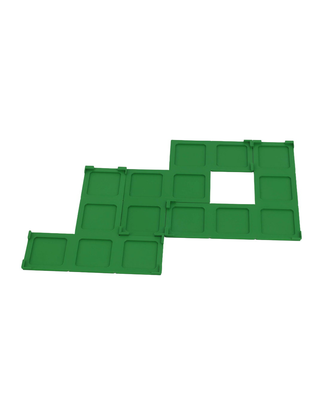 Einfache Integration – die Aufsätze werden einfach auf bestehende Spielgitter gesetzt und halten alle Plättchen stabil an Ort und Stelle.