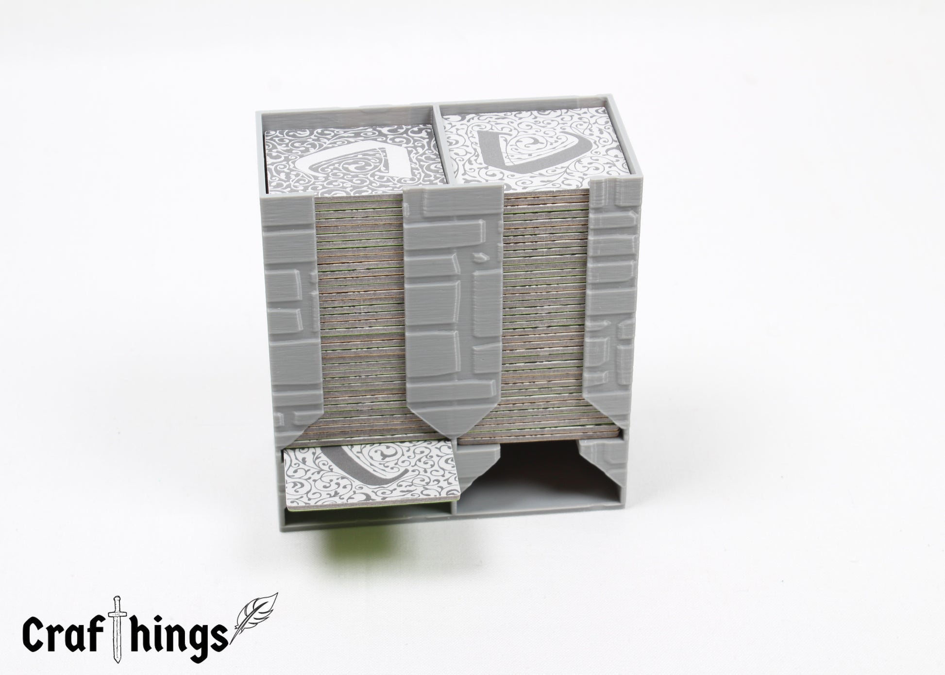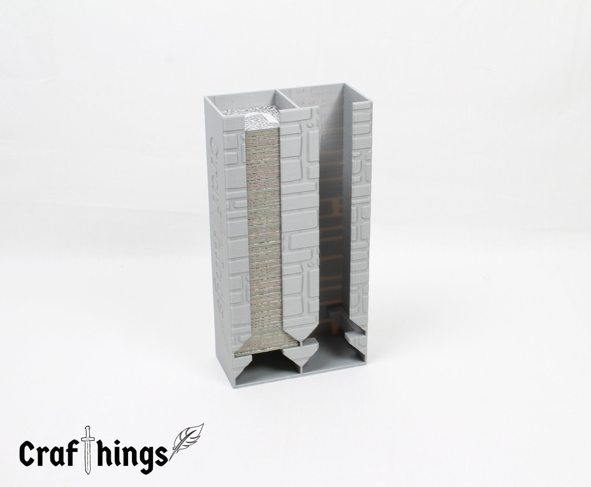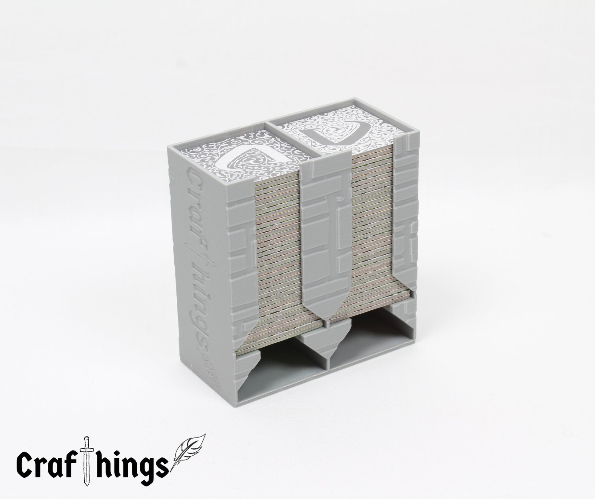 In diesen praktischen Plättchenturm passen 72 (small) oder 144 Fliesen (large). Der Turm ist passend für Carcassonne. Auf den Bildern sind die 72 Landschaftskarten aus der Standardversion von Carcassonne abgebildet.