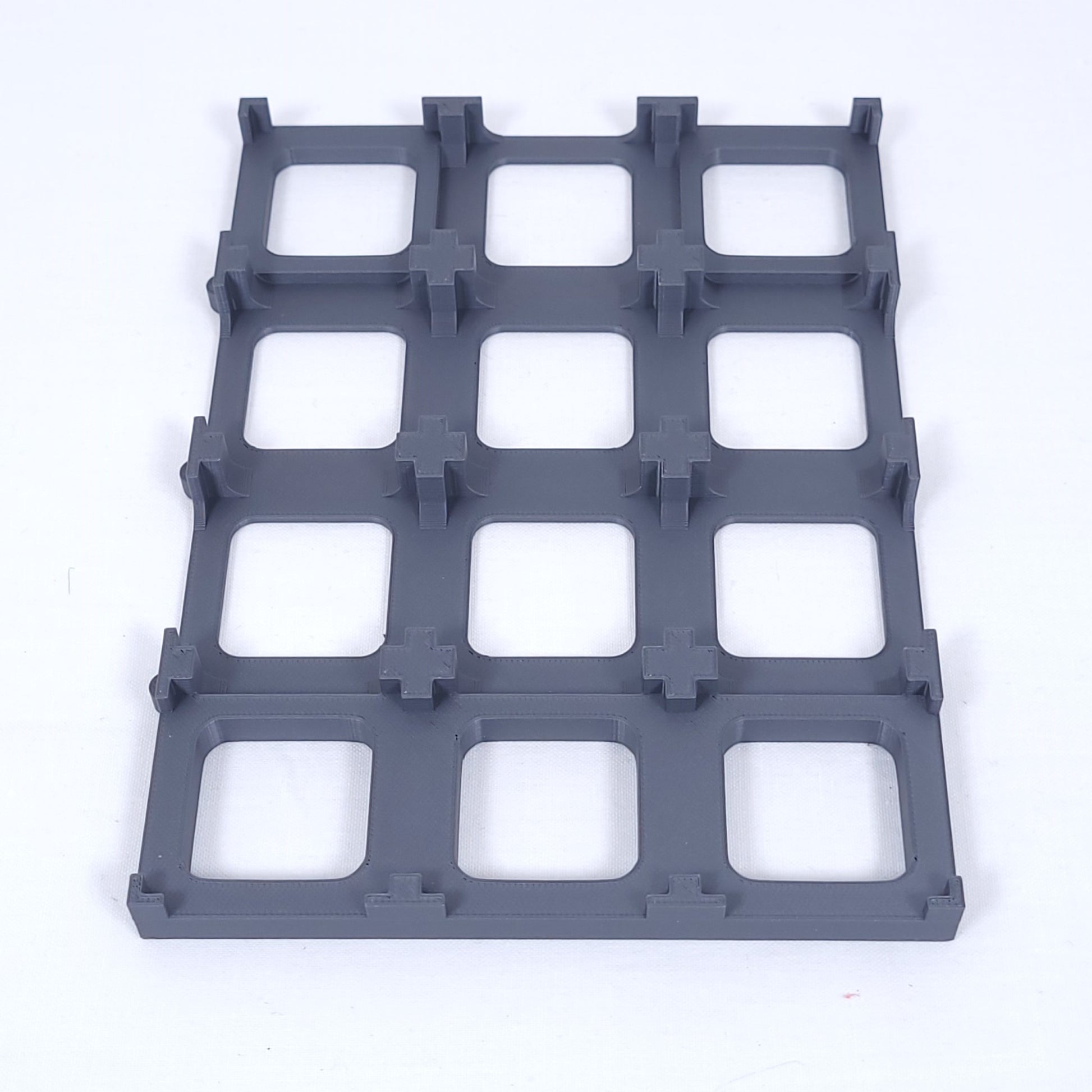 Mit diesen 3 Gittern können alle Plättchen einfach und unkompliziert aufbewahrt und direkt auf dem Spielbrett ausgebreitet werden.