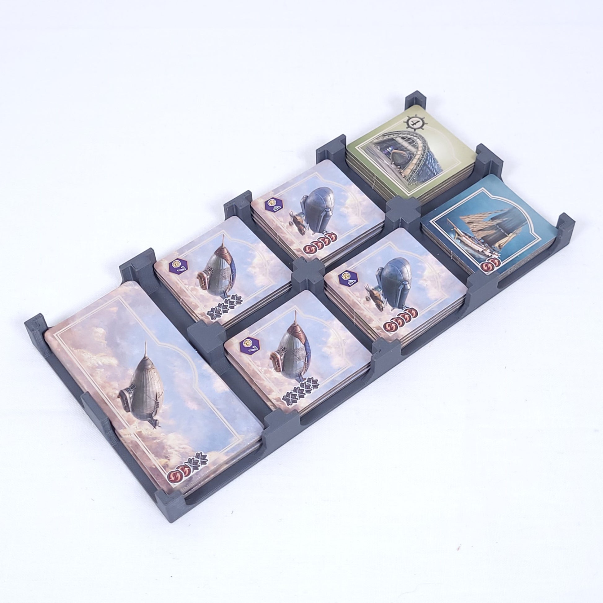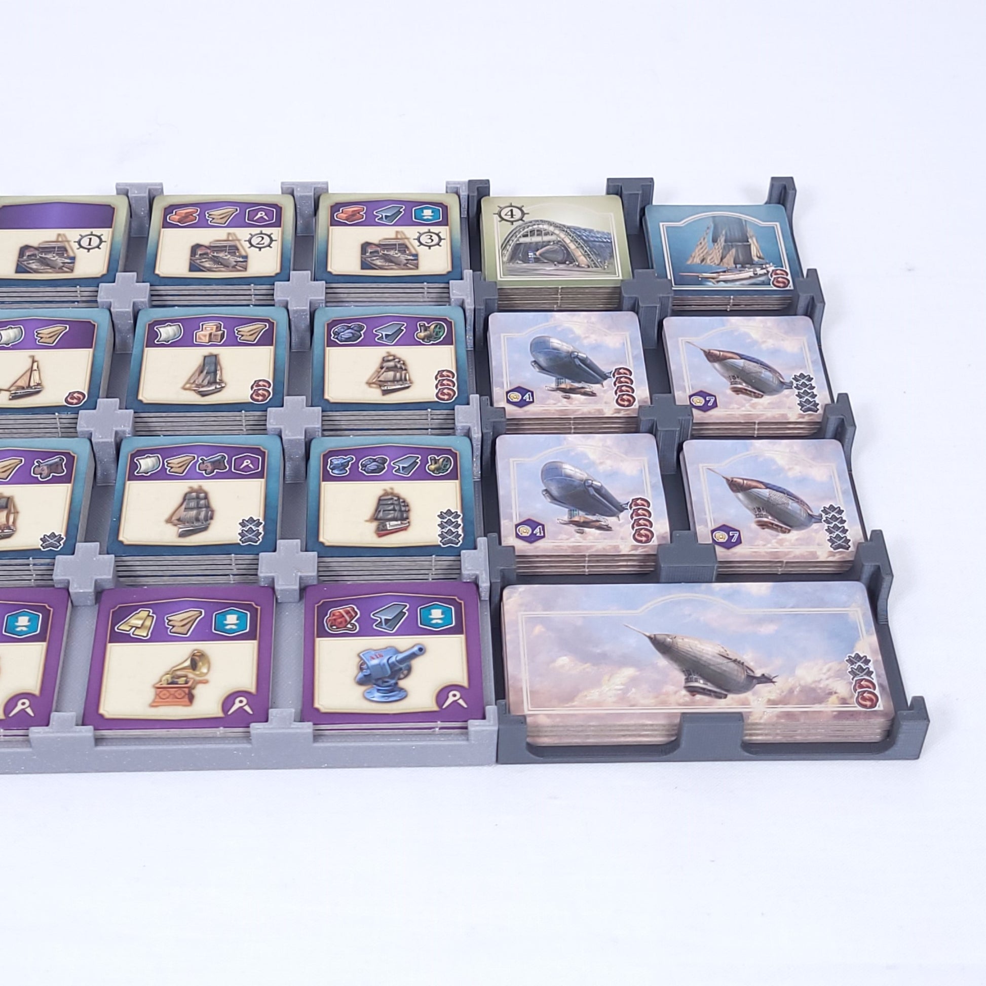 Mit diesem Gitter können alle Plättchen der ANNO 1800 Erweiterung einfach und unkompliziert aufbewahrt und direkt neben dem Spielbrett ausgebreitet werden.