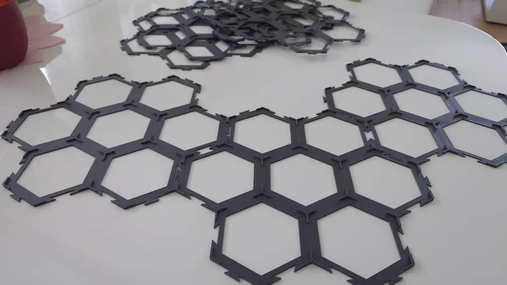 Die Karak-Plättchen lassen sich passgenau in die Gitter einsetzen und werden durch die integrierten Steckverbindungen sicher miteinander verbunden. Dadurch entsteht ein stabiles Spielfeld, das auch bei längeren Spielrunden oder versehentlichen Berührungen seine Form behält. Kein Nachjustieren mehr – jedes Plättchen bleibt genau dort, wo es liegen soll.
