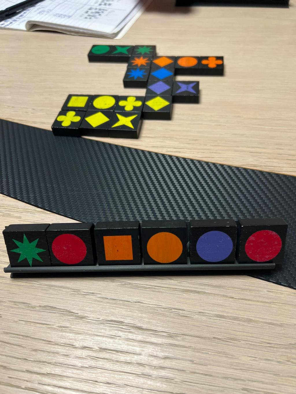 Mit diesen Haltern können die Spielsteine von Qwirkle sicher und praktikabel aufgestellt und aus dem Halter heraus gespielt werden. Kein Stein fällt mehr aus Versehen um oder muss verdeckt auf dem Tisch liegen.