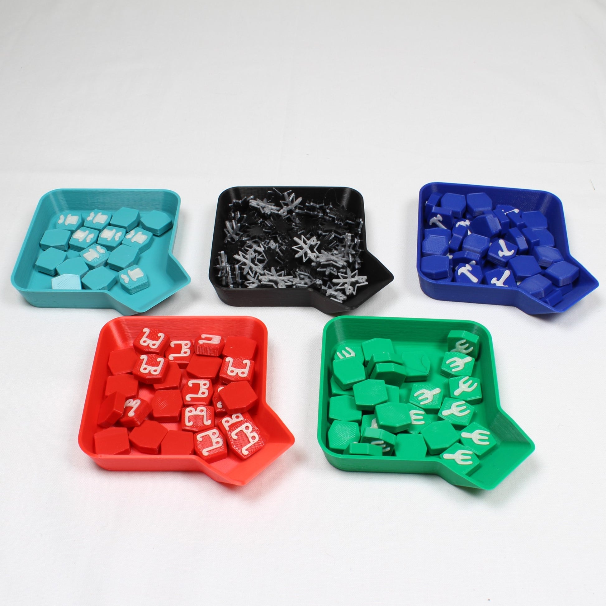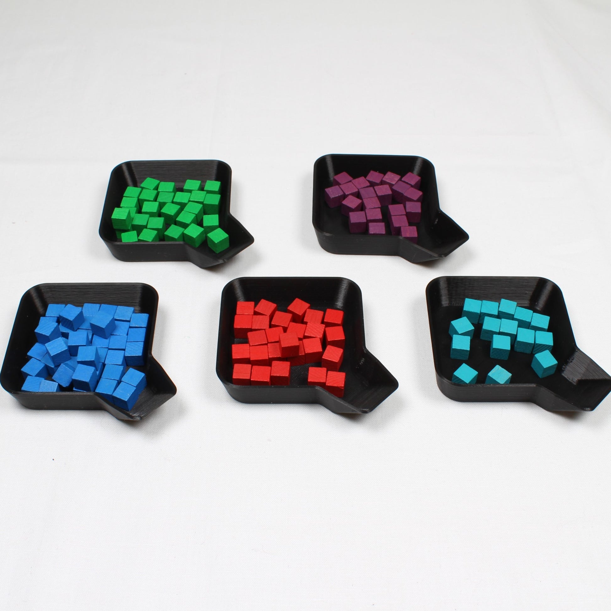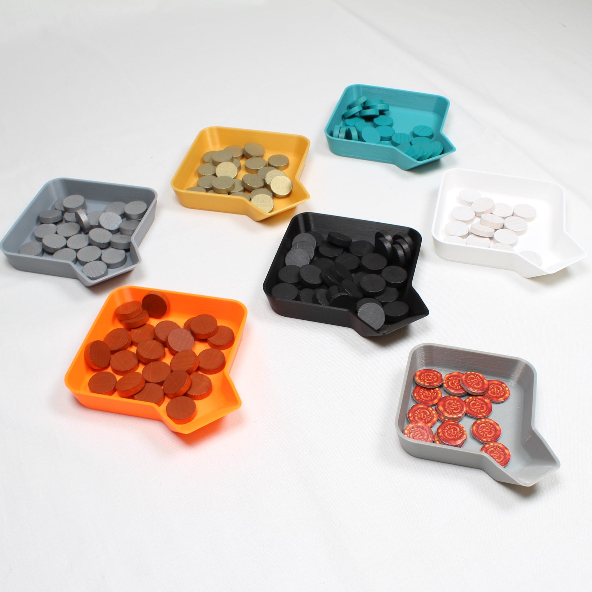Mit diesen stapelbaren Schalen bleiben die losen Teile aus Gesellschaftsspielen organisiert beieinander. In den Schälchen können Tokens, Würfel, Marker, Plättchen oder anderes Brettspielzubehör praktisch und sicher auf dem Tisch aufgestellt werden. Die Einzelteile fliegen nicht mehr wild durcheinander oder fallen aus Versehen vom Tisch. Alles kann zentral und einfach aus den Schalen entnommen werden.